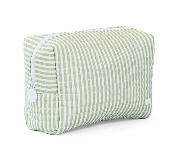 Perfect for Everyday use! This ultimate large, soft, lightweight quilted zippered pouch is ideal for diapers, wipes, toiletries, cosmetics and everything in between. This style is designed to stand on its own and has an interior pocket for smaller needs. Both functional and beautiful, this would be a great addition to any TRVL set and is wipeable inside and out and machine washable.