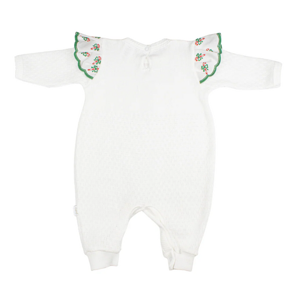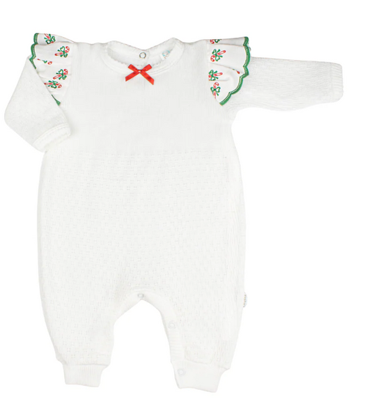 Paty Knit Angel Sleeve Romper with Swiss Candy Cane Trim - 9mo